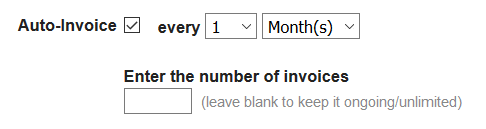 The Auto-Invoice option allows you to create Recurring Invoices that can be used in lieu of billing with auto-draft. It can also be used to split up payments for events, seminars, and pro-shop items. By checking this box, you can choose to set up series of invoices, choosing the frequency and number of the new invoices.