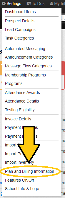 - Hover over Settings and click on Plan and Billing Information at the bottom of the menu