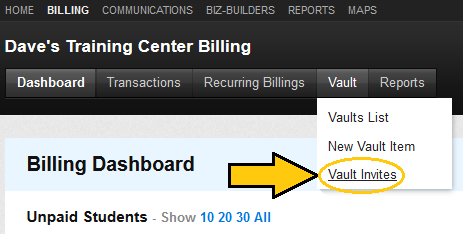 - Vault Pending - Students/Families that have been sent an invite but have not registered a vault item.
